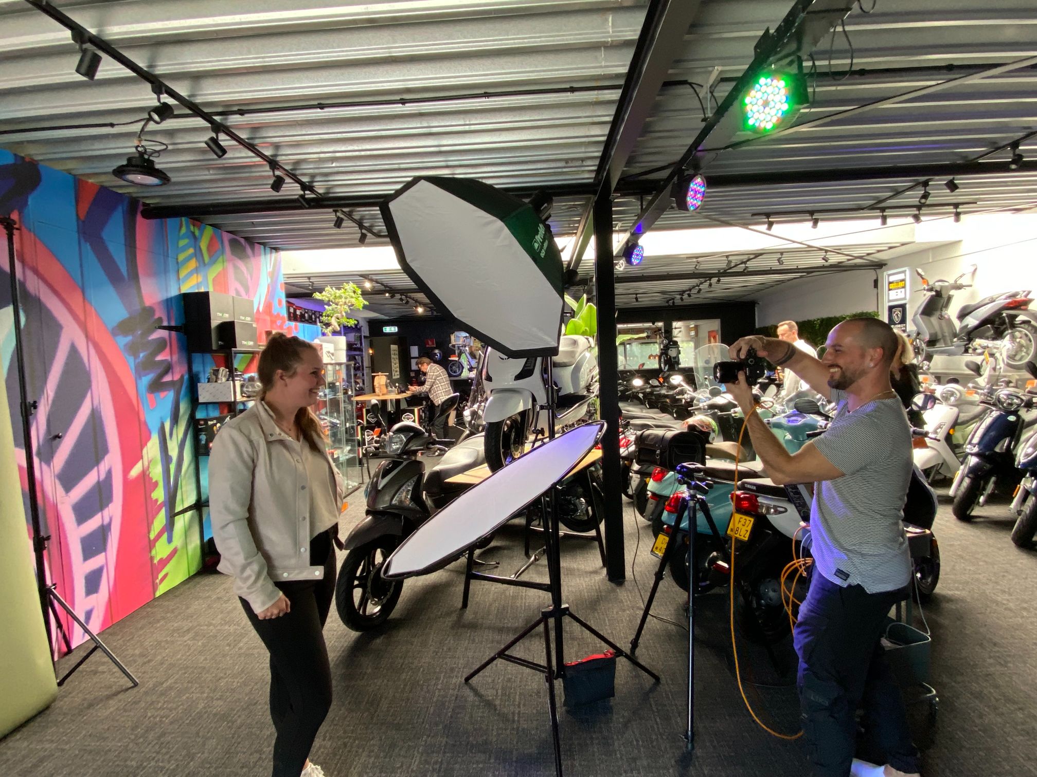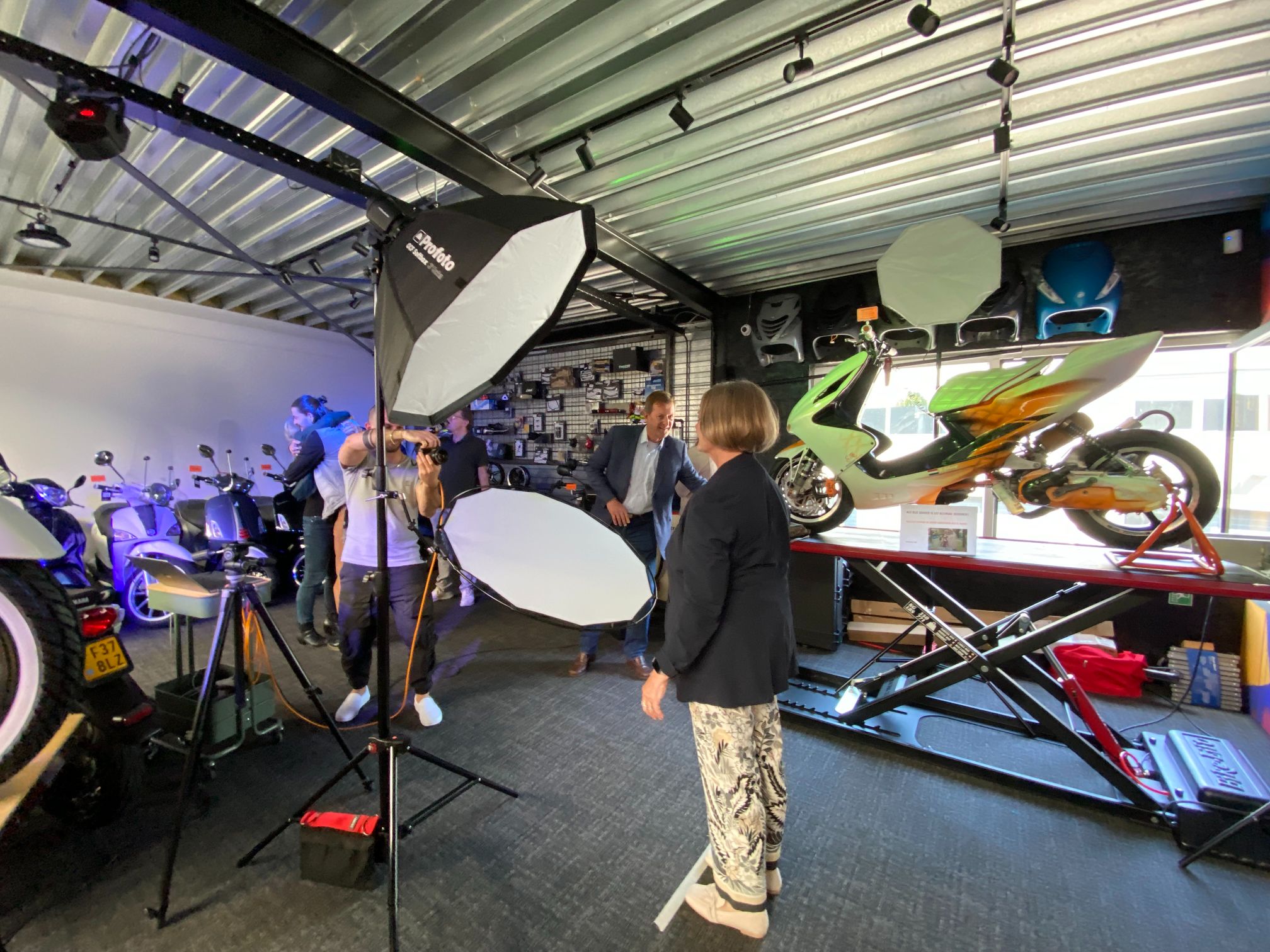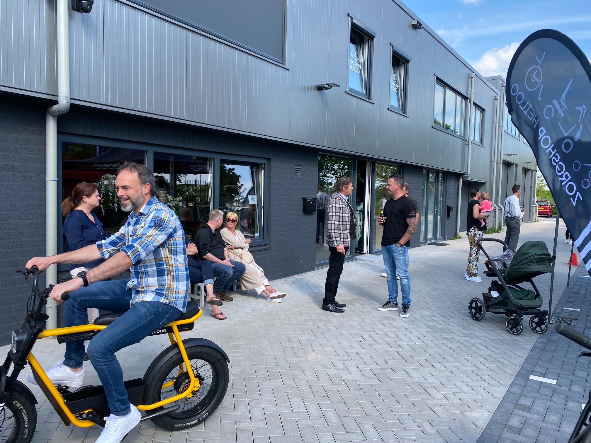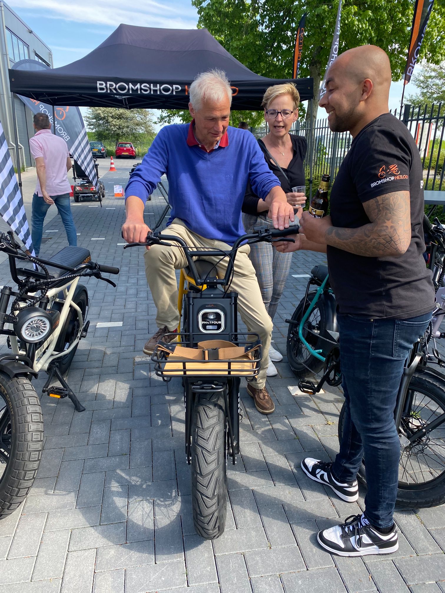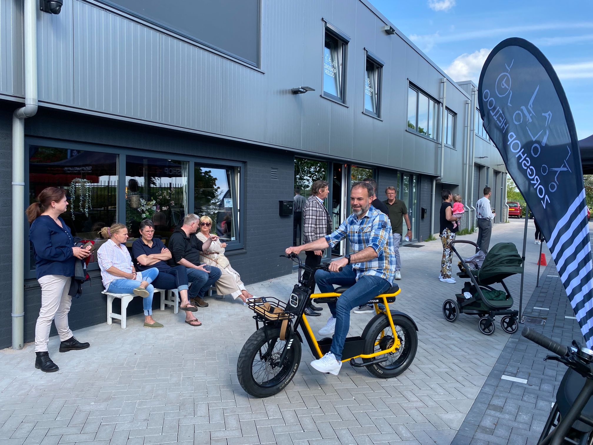 Vrijdag 19 mei stond de netwerkbijeenkomst in het teken van de drie winnaars van de Ondernemingsverkiezing. We brachten een bedrijfsbezoek aan: Chocolate King BV, Bromshop/Zorgshop en Shot by Zeb. Na deze leuke en leerzame bedrijfsbezoeken – je kon bijvoorbeeld op een e-fatbike een rondje rijden en een verse chocolade boomstam proeven – ging de barbecue aan op het pleintje.